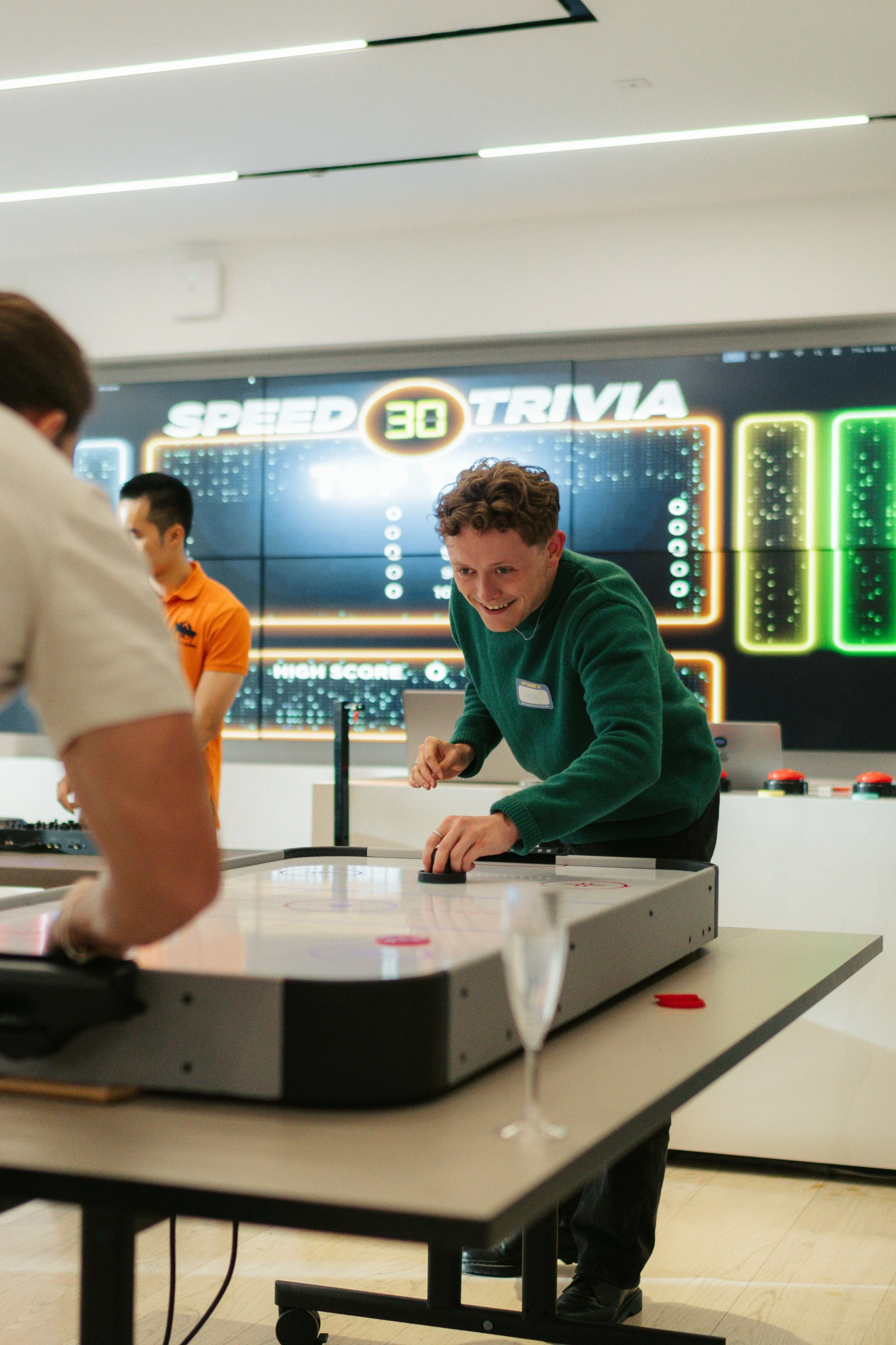 Competitive stations run in the background & guests drift in when curiosity pulls them.